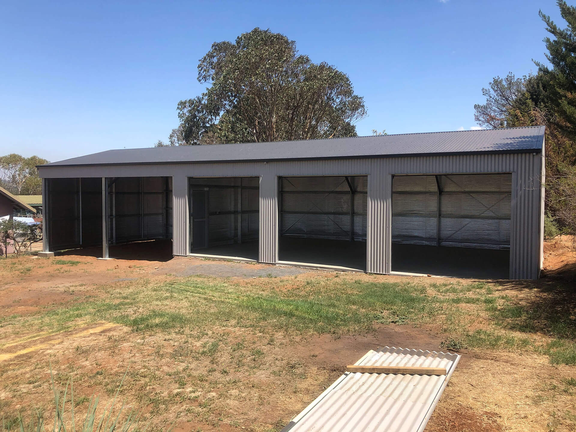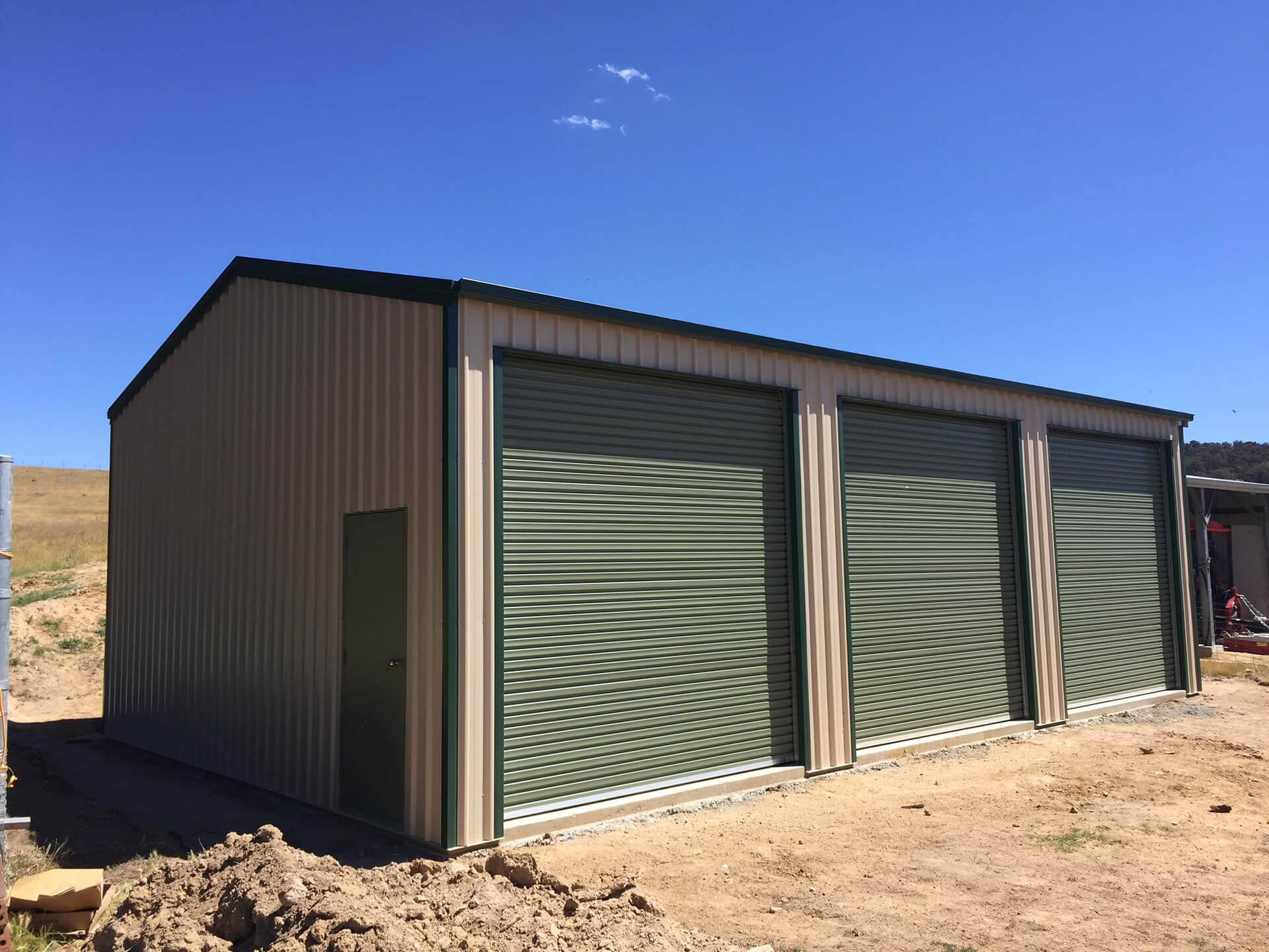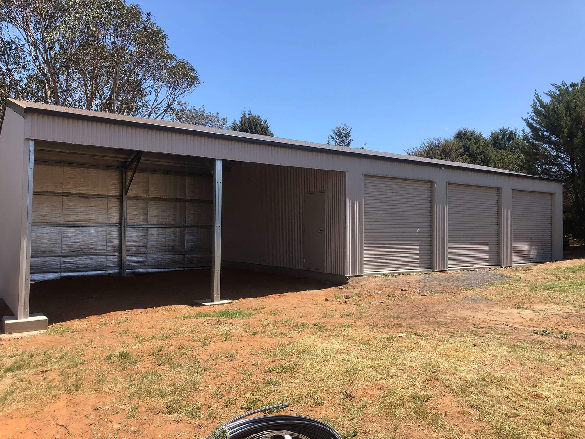 - Farm sheds with sliding doors or a roller door