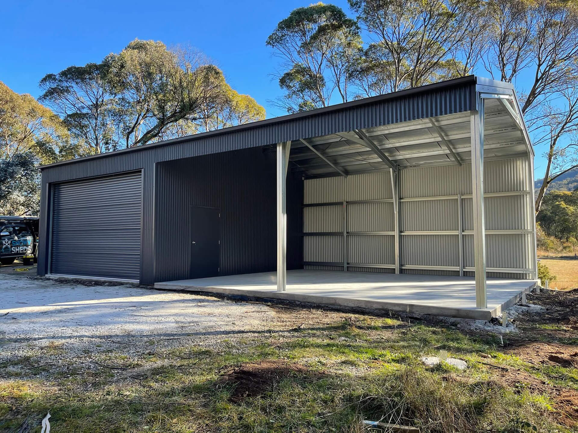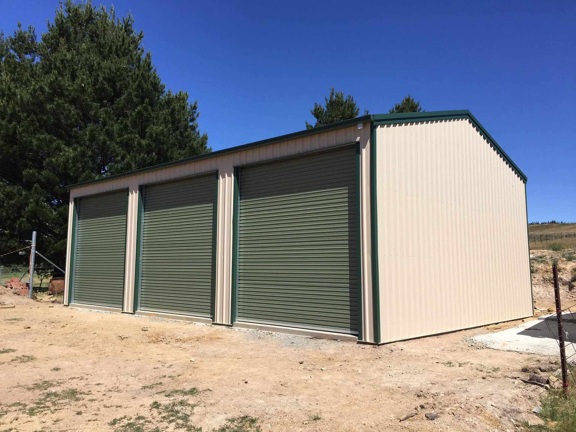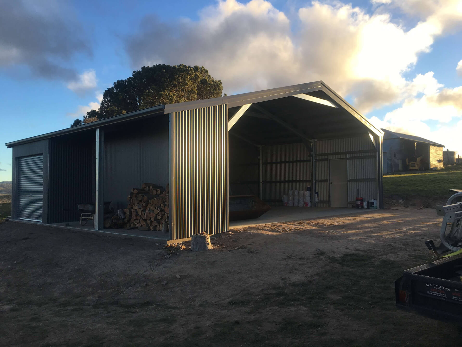 - Farm sheds with sliding doors or a roller door